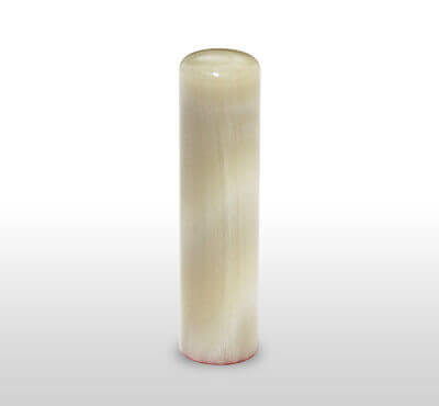 陸牛の角から取れる飴色の高級印材。「オランダ水牛」とも呼ばれますが、オランダ産でも水牛でもありません。牛角(色付き)と違い、模様のない淡い白色が「牛角(白)」として象牙に次ぐ高級印材として珍重されています。優しい飴色が美しく女性に人気です。