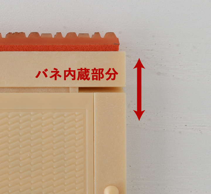 - 又通常のゴムは生ゴムをプレスする性質上、毎回ゴムの高さが変わる事からゴムの張り替えや追加注文時に毎回高さが変わり余分な納期と費用がかかります。