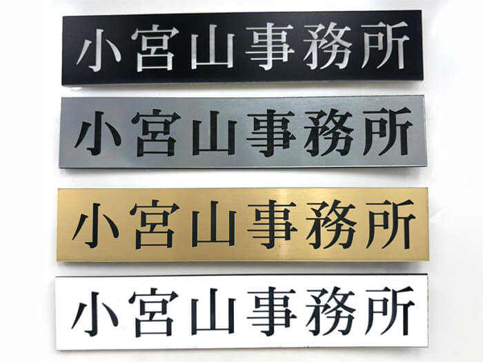 高級感のあるシルバーヘアラインから、一般的な白アクリルの彫刻印刷タイプもありますので、カラーでの作成も可能です。